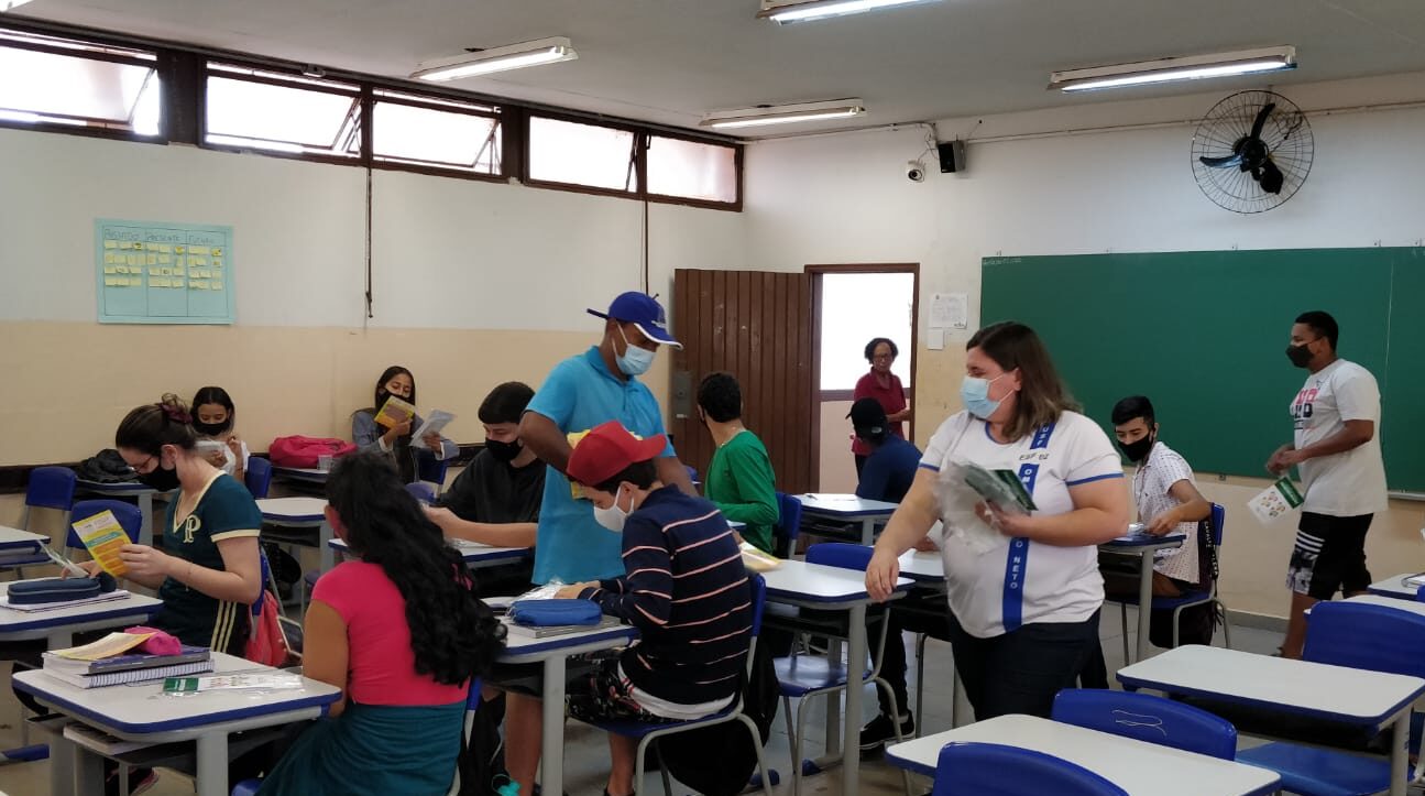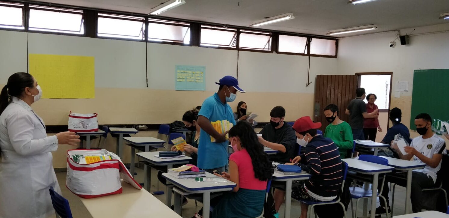 Nesta quarta-feira, 18 de agosto, a equipe responsável pelo P.S.E. (Programa Saúde na Escola), esteve na Escola Estadual “Alexandre de Ávila Borges”. Na ocasião, a Enfermeira da Vigilância em Saúde, Joelma Sales da Mata Alves, explanou sobre a importância da vacinação contra a Covid-19, para os alunos com idades de 16-17 anos. Orientou sobre a necessidade da presença dos pais no momento da vacinação e da declaração assinada, que deve ser retirada nas E.S.F. (Estratégia de Saúde da Família).
